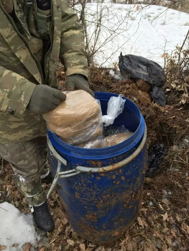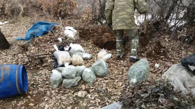 Operasyonda, 10 ev ve eklentisi ile Çavundur köyünün çevresinde yapılan aramada, araziye gömülü vaziyette 308 kilogram esrar, 15 kilogram kenevir tohumu ile sargı bezi, steril bisturi ucu, enjeksiyonluk solüsyon gibi çok sayıda tıbbi malzeme ele geçirildi.