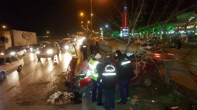 Samsun'da yoldan çıkarak orta refüjdeki demir bariyer ile ağaca çarpıp parçalanan otomobilde bulunan 3 kişi kazayı yaralı olarak atlattı.
