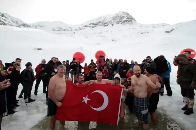 Rize'de bu yıl 5'incisi düzenlenen Kaçkar Kış Yüzme Şenliği'nde katılımcılar, dondurucu soğuğa rağmen 2750 rakımlı gölde yüzdüler. Kış turizmine dikkat çekmek için yapılan etkinlikte yaklaşık 40 kişi suya girmeye cesaret etti.