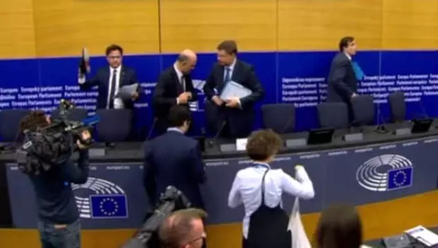 Basın Toplantısında Öfkelenen İtalyan Üye, AB Komiserinin Notlarını Ayakkabısıyla Ezdi!