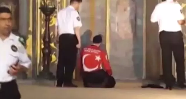 İbadete kapalı olan Ayasofya'ya gelen iki kişi aniden namaza durdu. Şahıslar, namazın ardından güvenlik görevlileri tarafından uzaklaştırıldı.
