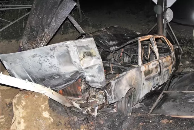 Tekirdağ- Muratlı yolunda bir otomobil, yol kenarındaki tabelaya çarpması sonucu alev alev yandı. Sürücü, kül olan araçtan sağ çıktı.
