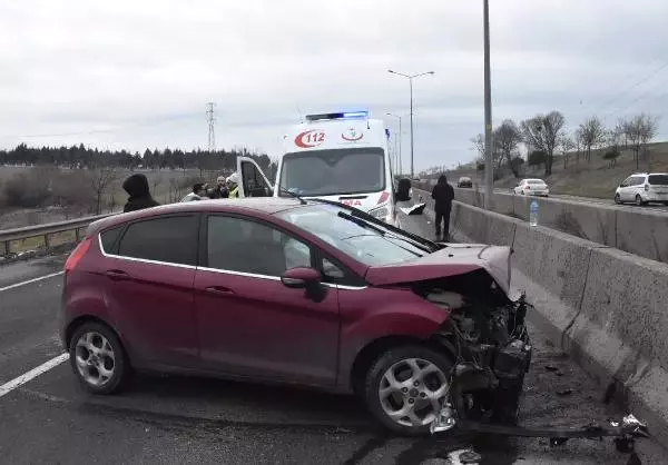 Tekirdağ'da önünde seyreden kamyonetin üzerinden düşen sac nedeniyle manevra yapınca bariyerlere çarpan kadın sürücü, büyük bir şok yaşadı.