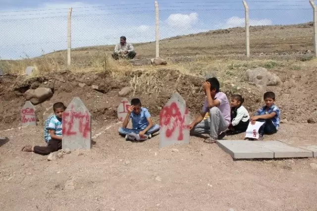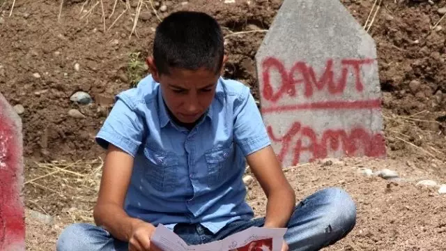 PKK'nın bomba yüklü kamyonu infilak ettirmesi sonucu 16 köylünün hayatını kaybettiği Diyarbakır'ın Sur ilçesine bağlı Tanışık köyünde eğitim gören öğrenciler, karnelerini mezarlığa götürdü.