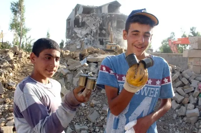 Babasıyla beraber hurdacılık yaparak 6 kişilik ailelerini geçindirdiklerini belirten sekizinci sınıf öğrencisi Emrah Demir ise, "Şu anda binaların demirlerini de yıkan firma alıyor, ama biz de kıyıda köşede kalanları topluyoruz. Bu yıl okula da gidemedim sokağa çıkma yasağı nedeniyle. Şimdiden gelecek yıl için okul harçlığımı topluyorum. Yıkılan binaların enkazındaki demirleri, yandığı için atılan ev eşyalarına ait hurdaları toplayıp götürüyoruz. Sokaklarda boş kovanlar da var. Demirin fiyatı 30 kuruş ama boş kovanların kilosunu 2 liradan satıyoruz" ifadelerini kullandı.