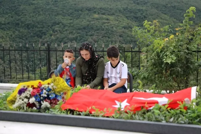 ÇOCUKLARIYLA BİRLİKTE EŞİNİN KABRİNİ ZİYARET ETTİ