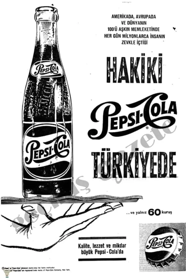 O zamanlar altmış kuruşa satın alabildiğimiz Pepsi'nin ilk afişi.