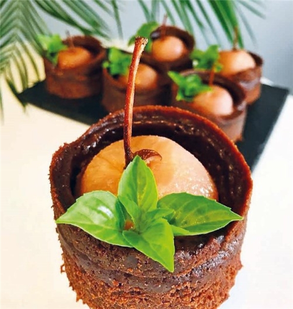 Akışkan çikolatalı 'moelleux' tarifim için hibisküsle poşe edilmiş willams armudu kullanıyorum. Sulu kıvamını, hibisküsün ekşi rayihası ve mükemmel rengiyle birleştirmeyi çok seviyorum. İkisinin ılık bitter çikolatayla uyumu tam bir sonbahar lezzeti...