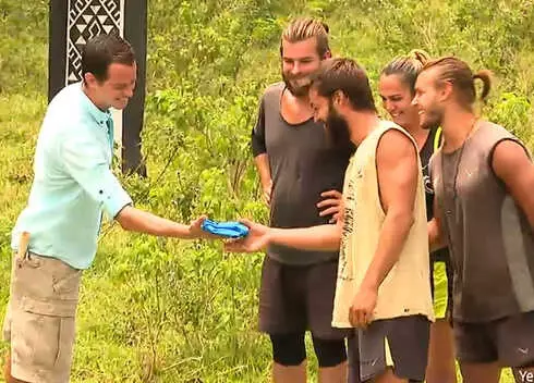 Survivor'da ödül oyunu öncesi Alp Kırşan, Hilmi Cem'e olan hayranlığıyla tanınan Survivor Yunanistan yarışmacısı Rodanthi'nin gönderdiği hediyeyi Hilmi Cem'e teslim etti.