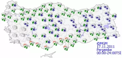 Devlet Meteoroloji İşleri Genel Müdürlüğü'nce yapılan son değerlendirmelere göre, Akdeniz, İç Anadolu, Doğu Karadeniz, Doğu Anadolu, Güneydoğu Anadolu ile Kırklareli, Tekirdağ, İstanbul, Çanakkale, Yalova, Kocaeli, Sakarya, Kastamonu, Sinop, Çorum ve Bandırma çevrelerinin yağışlı geçeceği tahmin ediliyor. Yağışların genellikle yağmur ve sağanak, İç Anadolu, Doğu Anadolu ile Doğu Karadeniz'in iç kesimleri, Kırklareli, Kastamonu, Isparta ve Burdur'un yükseklerinde karla karışık yağmur ve kar şeklinde olması bekleniyor. İç ve doğu bölgelerde buzlanma ve don olayı görüleceği tahmin ediliyor.