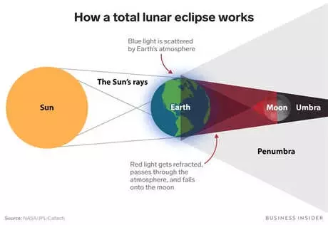 Gökyüzünü mavi görüyor olmamızın nedeni, Dünya'ya gelen Güneş ışınlarının beyaz kısımlarının atmosfer tarafından emilmesi fakat mavi ışığın geri yansıtılması nedeni ile olur. Kanlı ay tutulmasında ise gelen ışınlardan kırmızı tonlarına sahip olanlar kırılarak, geri yansıtılır. Bu yansıyan ışınlar, Ay'ın üzerine düştüğü için de tutulma esnasında uydumuzu kırmızımsı tonlarda görürüz.
