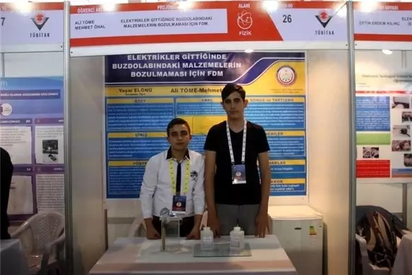 Lise öğrencileri, TUBİTAK bünyesinde tanıttıkları proje ile elektrikler kesildiğinde buzdolabında bulunan gıdaların bozulmasını önüne geçecek düşük maliyetli formüllerini sundu.