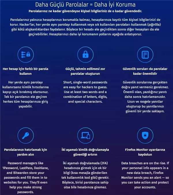 Mozilla'nın açık kaynaklı internet tarayıcısı olan Firefox, kullanıcılarını veri ihlaline uğramış bir siteye girdiğinde uyarıyor, bu site içerisinde kişisel bilgilerini paylaşmamalarını öneriyor. Kişisel bilgilerin korunmasına oldukça önem veren Mozilla, bu verilerin daha öncesinde ele geçirilip geçirilmediğini görmemizi sağlayan Firefox Monitor platformunu, herkese açık bir şekilde ve ücretsiz olarak sunuyor.