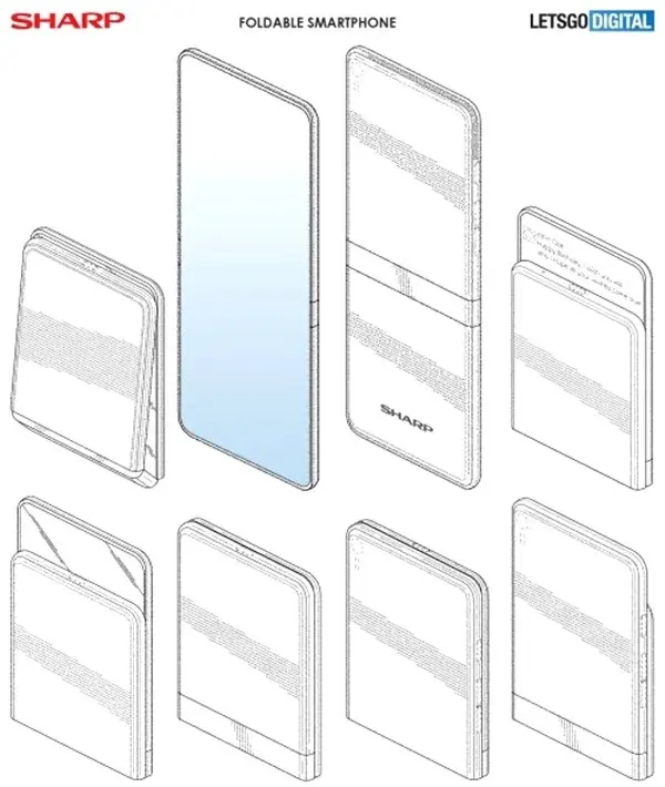 Patent görselleri, Sharp'ın ZTE Axon M2 ve Motorola Razr gibi kapaklı telefon tasarımında bir katlanabilir telefon ortaya çıkaracağını gösteriyor. Ancak söz konusu patent belgeleri 2017 yılına ait olduğundan Sharp'ın fikrini değiştirdiği ya da bu patentleri yalnızca 'bulunsun diye' almış olabileceğini söyleyebiliriz.