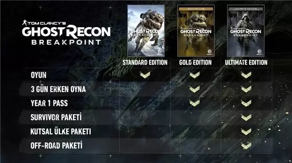 Tom Clancy's Ghost Recon: Breakpoint'in ön sipariş paketlerini ve fiyatlarına aşağıdan ulaşabilirsiniz.