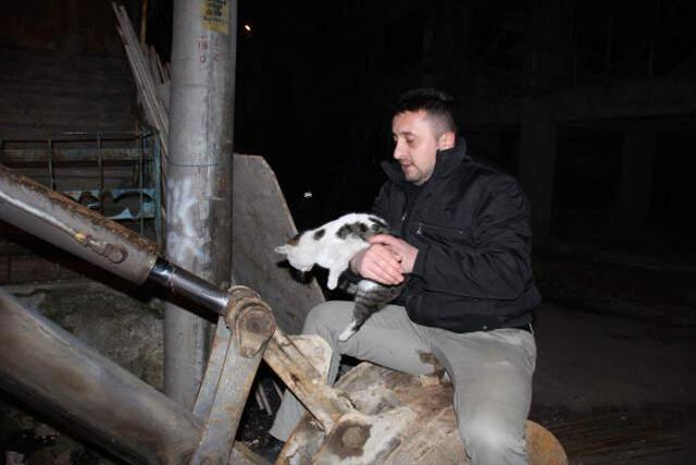 Kepçe Operatöründen Kedi Kurtarma Operasyonu