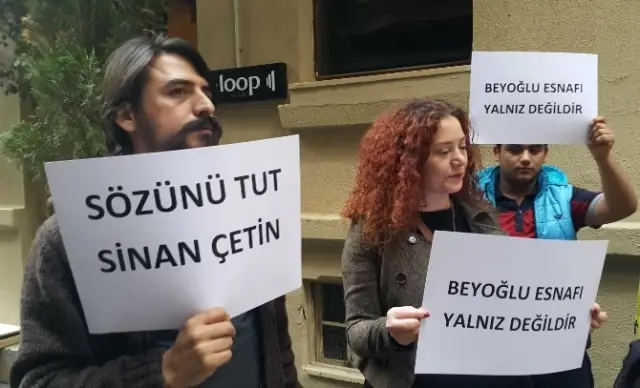 Beyoğlu'nda Yönetmen Sinan Çetin'e ait olduğu belirtilen iş yerinden, yaşanan gerginlik sonucunda çıkartılan işletmeci ve Beyoğlu Esnaf Dayanışması üyeleri, eylem yaptı.