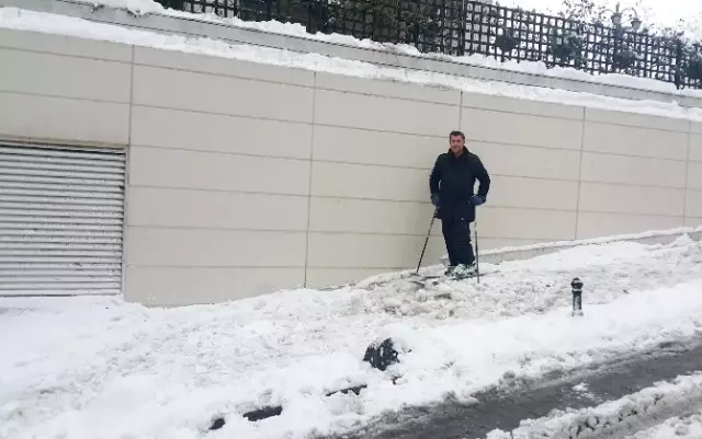 İstanbul'da etkili olan kar yağışını fırsat bilen vatandaşlar karın keyfini çıkarırken, Taksim Gümüşsuyu İnönü Caddesi üzerinde kaldırım üzerinden kayak yapan Fransız Kültür Merkezi Müdürü Matthieu Bardıaux, Uludağ'ı aratmayan görüntüler oluşturdu.