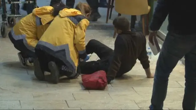 "Ben burada çalışıyorum. Arkadaşlar tartıştılar ve kavga iyice büyüdü. İlk tartışma içeride başladı. Dışarıda konuştular, sarhoştular galiba tartışma büyüdü. Çekti vurdular birbirlerini. İki kişilerdi, biri karışmadı. Beyaz bir arabaları vardı, binip gittiler. Bizde sesleri duyduk. 3 el ateş ettiler ikisini de bacağından vurdu, diğerini bilmiyorum. Bir güvenlik olaya bakmak için gelmişti, içeridekinin durumu kötüydü"