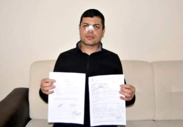 Kocaeli'de, tramvay yoluna aracını park eden sürücü, ceza kesmek için aracının fotoğrafını çeken zabıta memurundan fotoğrafı silmesini isteyerek, darp etti. Burnu kırılan zabıta memuru Murat Fidan, kendisini darp edenler hakkında sikayetçi oldu.