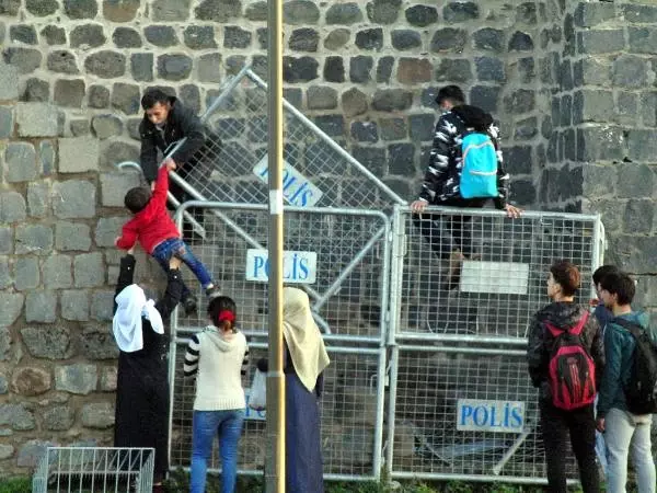 Diyarbakır'da sürdürülen operasyonların ardından güvenlik güçleri tarafından kapatılan tarihi Diyarbakır surlarında selfie çekmek isteyen vatandaşlar barikatları aşarak surlara tırmanıyor.
