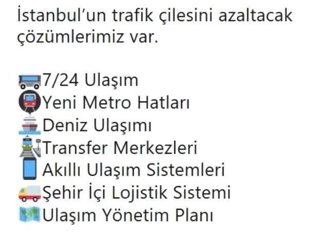 İmamoğlu, "Ulaşım bütüncül yaklaşım insanı hissetme, onlarla çözüm bulma, minibüsçüsü, servisçisiyle yaptık. tahdit işini biz taaddüt ettik. Biz bütün aktörlerle beraber çalışacağız. Ulaşım indirimleri büyükşehir belediyesi sorunudur. Halk otobüslerine veya şirketlere mal edilmeyecek. Taksicilerin minibüsçünün köprünün ücretsiz kullanma konusunda çalışmalar yapacağız. sayın Yıldırım'da ulaşımda Türkiye'yi hallettim dedi. Cumhurbaşkanının verdiği uzmanlara haksızlık yaptığını düşünüyorum. İstanbul hal edemediler. İstanbul en sıkışık kent. İstanbul ulaşımda günde geçirdiği vakit 91 dakika, İstanbul'u çözemediler. İstanbul'da metrodan bahsediyorlar. Marmarayı kullandı, çok teşekkür ediyorum. 2004'te 45 km aldıkları metro hattı 170 km erişebildi. Senede 8.3 km yaptılar. Beylikdüzü hala duruyor. 2004'ten beri her seçimde vaat edilmiştir. Deniz ulaşımı yüzde 10'lardan yüzde 3'lere düştü. Bu şehide 500 kilometre bisiklet hattını, yaşam vadilerinde yüksek tepeleri olan bu kentin sahile erişimi noktasında fünikülerle destekleyeceğiz. TEM'de kuracağımız megabüsle metrobüs hattının yükünü hafifleteceğiz" diye konuştu.