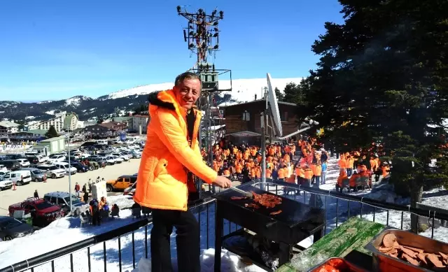 Ünlü İşadamı Ali Ağaoğlu kesenin cebeni Uludağ'da 2 bin kişiye sucuk partisi verdi.