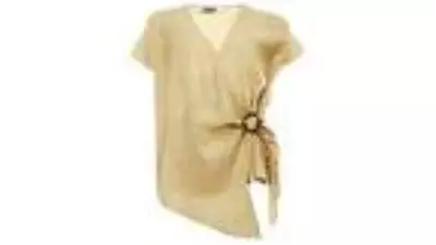 Beyaz bir kumaş pantolon ve ten rengi stilettolarla eşleştirilebilecek keten bluz Love My Body'den. 99.90 lira.
