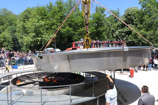 Guinness Türkiye yetkilileri tavanın büyüklüğünü metre ile ölçtü ve kamera ile kaydetti. 7 metre 4 santimetre uzunluğunda, 80 santimetre derinliğinde, 2 tonluk tava vinçle, 12 ton odun 3 ton kömürün yanmasından elde edilen ateşin üzerine konuldu.
