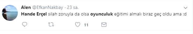 2017'nin en iyi kadın oyuncusu seçildiği dönemde de pek çok eleştiri alan Hande Erçel, dizisi final yapınca yeniden sosyal medyanın diline düştü. Erçel'e "Oyunculuk eğitimi almalı" tweetleri yağdı.