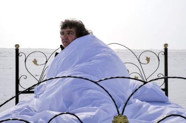 Erzurum'daki Atatürk Üniversitesi Güzel Sanatlar Fakültesi (GSF) Resim Bölümü Başkanı Prof. Dr. Mehmet Kavukçu, mülteci sorununa dikkat çekmek için, 'Yatak' başlıklı farklı bir çalışmaya imza attı. Prof.Dr. Kavukcu, yatağını taşıdığı karla kaplı ovada kimi zaman uyudu kimi zaman da bir yaşam biçimini sergiledi.
