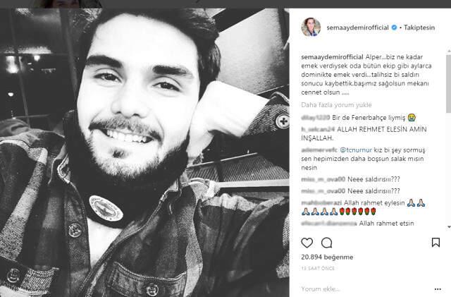 Survivor ekibinin kalbinden bıçaklanarak öldürülen kameramanı Alper Baycın, ekip arkadaşlarını yasa boğdu. Alper Baycın'ın ölümü üzerine şok olan mesai arkadaşları, sosyal medya hesaplarından ölen arkadaşları için duygu dolu paylaşımları yaptı.