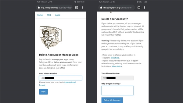 Telegram hesap silme: Android ve iPhone