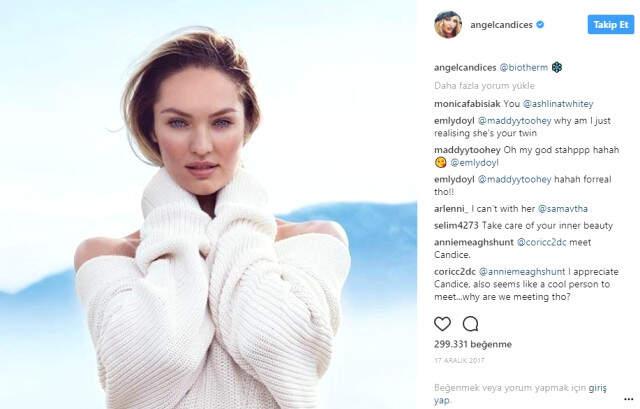The Sun'ın haberine göre; 29 yaşındaki Victoria's Secret meleği Candice Swanepoel'un Instagram'da yaptığı paylaşım başına 70 bin dolar (260 bin TL) kazandığı ortaya çıktı.