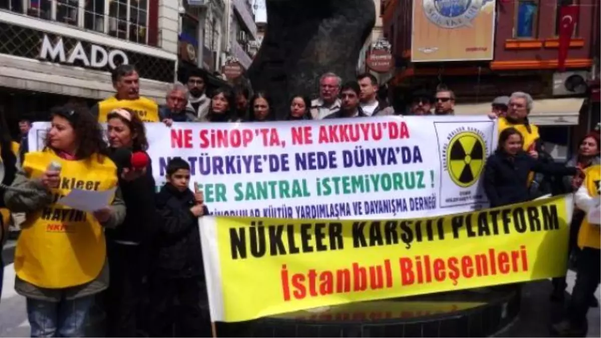 'nükleer Karşıtı Platform' üyesi bir grup, Beşiktaş Kartal heykelinin bulunduğu meydanda nükleer santrallere karşı eylem yaptı.