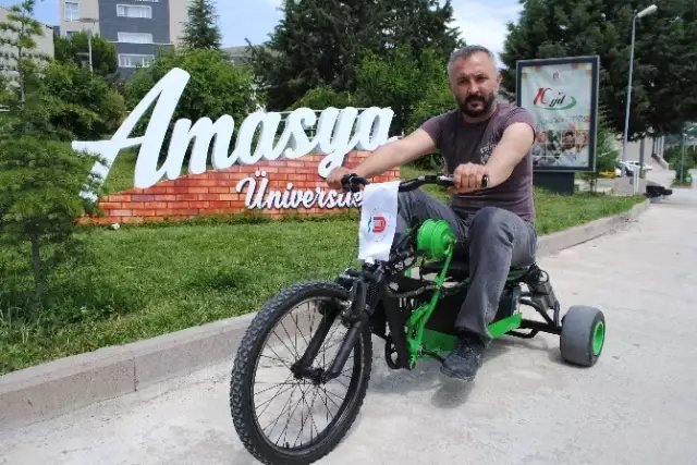 Amasya Üniversitesi Teknik Bilimler Meslek Yüksekokulu Uzaktan Eğitim Mekatronik Bölümü öğrencileri Onur Yalçın, Mehmet Tamay ile Kemal Karagöz'ün tasarladıkları bisiklet düz yolda ve yokuşta hızla ilerlemesiyle dikkat çekiyor.