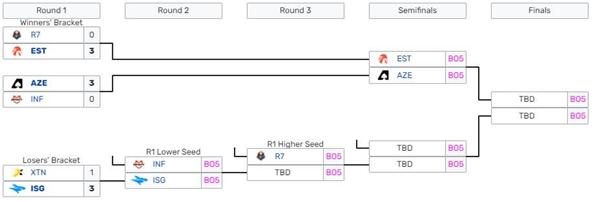 Kazananlar havuzunun birinci turunun galipleri Estral Esports ve Team AZE oldu. Bu takımlar yarı finalde karşılaşmaya hak kazandı. Kaybedenler havuzunun ilk maçını kazanan Isurus Gaming, bu havuzun ikinci turunda INFINITY ile karşılaşacak. Bu turun galibi ise, üçüncü turda Rainbow7 ile karşılaşacak.