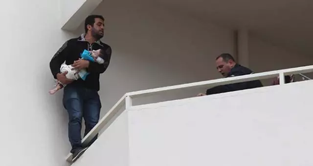 Adana'da çocuğu hastanede tedavi gören bir vatandaş, serumun çıkarılmasına kızıp 17 aylık bebeğiyle birlikte hastanenin 7'nci katındaki balkonuna çıkarak intihar etmek istedi.