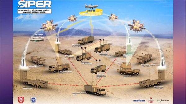 Son katmanda ise ilk başta HİSAR U adıyla geliştirilen fakat daha sonra SİPER olarak anılan Hava Savunma Sistemi yer alıyor. SİPER'in Blok1 olarak karşımıza çıkan versiyonunda asgari menzil 30 km, azami menzil ise tam 100 km. Tabii ikinci ve üçüncü etapta envantere alınacak Blok2 ve Blok3'lerin menzili 150 kilometreyi geçecek.