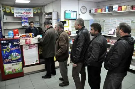 Ankara'da şans oyunlarında 5 kez büyük ikramiye kazandıran Hüseyin Çakmak'a ait bayi önünde yılbaşı öncesi 70 milyon liranın hayalini kuranlar kuyruk oluşturdu.