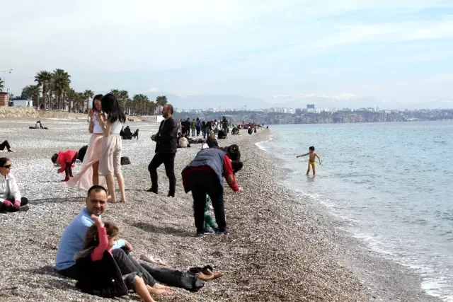 Hava sıcaklığının 16 derece, deniz suyu sıcaklığının ise 15 derece ölçüldüğü Antalya'da hafta sonunu fırsat bilen vatandaşlar Konyaaltı Sahili'ne akın etti. Yerli ve yabancı turistlerin de doldurduğu plajda tatilciler, denizin ve güneşin keyfini çıkartırken, bazı vatandaşlar ise aileleriyle birlikte deniz manzarasına karşı kahvaltı yaptı. Hatıra için bol bol selfie de çekinen vatandaşlar, sahilde kitap okudu, yürüyüş yaptı.