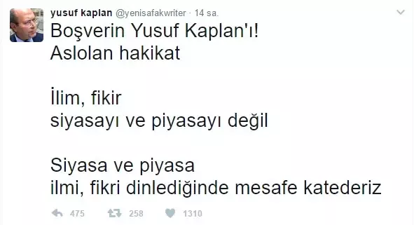 Yusuf Kaplan, son paylaşımında ise şu ifadelere yer verdi: