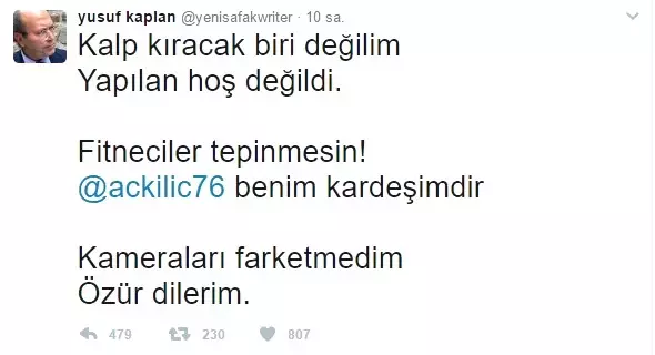 'BAKAN KILIÇ KARDEŞİMDİR. ÖZÜR DİLERİM"