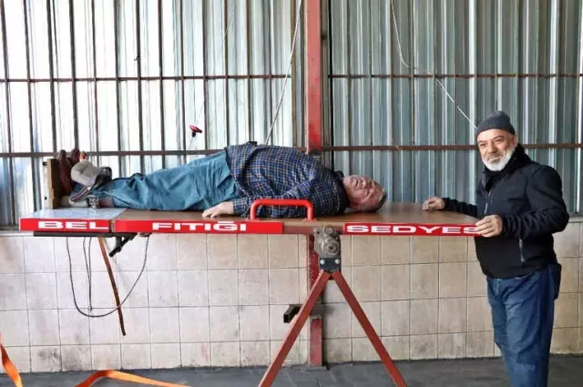 Rot Balans Ustası, Dükkanında Kurduğu Düzenekle Bel Ağrısı Çekenleri Tedavi Ediyor