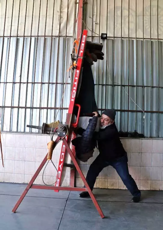 Alet hakkında bilgiler de veren Tetik, "6 aydır 30-40 arkadaşımıza baktık. Yüzde yüz çözüm değil tabi. Fıtığı çok ilerlemiş olan hastaları doktorlara yönlendiriyoruz. Tıp gelişti, mikro cerrahi var. Son çare ameliyat olacaksa, olması gerekiyor ama 'Dikkat edeceksin, ağır kaldırmayacaksın' denilen arkadaşlarla ilgileniyoruz. Ayağından baş aşağı bağlıyoruz, kurduğumuz özel sistemle rahatsızlığı olan kişileri ters asıyorsun. Oradaki diskleri, omuriliğin arasına sıkışmış olan sinirlerin açılmasını sağlıyorsun. Zaten her insanın sabah akşam 3'er dakikadan da olsa baş aşağı sallanması gereken bir durum. Çok sağlıklısın diyelim, yine de her sabah yapması gerekiyor. Gelen arkadaşlara yardımcı olmaya çalışıyoruz" ifadelerini kaydetti.