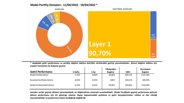 Model portföyde, yatırımcının portföy tutarının tümü modelden elde edilen ağırlıklar göz önünde bulundurularak dağıtılmış olup, nakitte ya da tetherde para tutulmamaktadır.