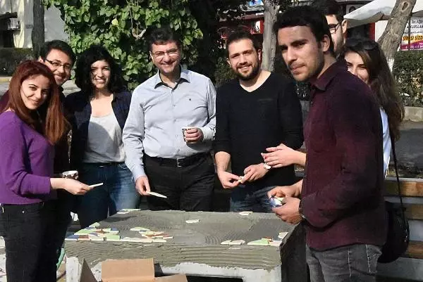 İzmir'in Bornova İlçesindeki Ege Üniversitesi İktisadi ve İdari Bilimler Fakültesinin Sanat Parkı'ndaki çalışmalara katılan Dekan Prof.Dr. Engin Berber, öğrenci ve öğretim üyeleri, parktaki masaları, İspanyol heykel sanatının önemli isimlerinden Gaudi'nin izlerini taşıyan mozaikle süsledi. Prof.Dr. Berber, "Öğrenciler çalışmalara katılmak istedi, onları kırmadık. Her biri grup çalışmasıyla masalara izlerini bıraktı" diye konuştu.