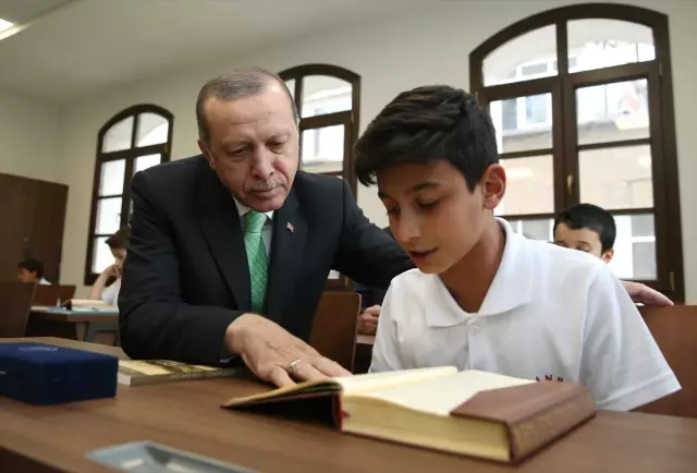 Cumhurbaşkanı Erdoğan 44 yıl önce mezun olduğu ve kendi ismini taşıyan imam hatip lisesinde öğrencilerle birlikte sıralara oturup, Kur'an okudu.