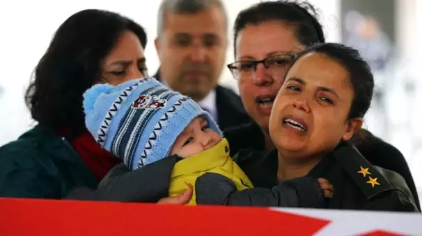 Şırnak'ta PKK'nın düzenlediği saldırıda şehit düşen Piyade Üsteğmen Muhammet İsmail Kaya'nın eşi Nuray Göçmen Kaya, oğluna "Hadi oğlum, babanı öp" diye seslendi, gözyaşları sel oldu.