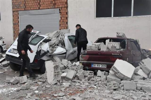 Sivas'ta sabah saatlerinden itibaren etkisini artıran kuvvetli rüzgar ve fırtına hayatı olumsuz etkiledi. Meteoroloji verilerine göre hızı saatte yaklaşık 40-60 kilometre olan kuvvetli rüzgar ile yer yer 70-100 kilometre arasında değişen fırtına kent genelinde etkili oldu. Kuvvetli rüzgar ve fırtına nedeniyle kent merkezindeki 4 Eylül Sanayi Sitesinde Ömer Işık'a ait bir iş yerinin çatı kısmındaki yan duvar uçtu. Duvarın uçmasıyla park halinde bulunan 2 otomobil, 1 hafif ticari araç ile 1 minibüste hasar oluştu. Otomobiller ve hafif ticari araç kullanılamaz hale geldi.